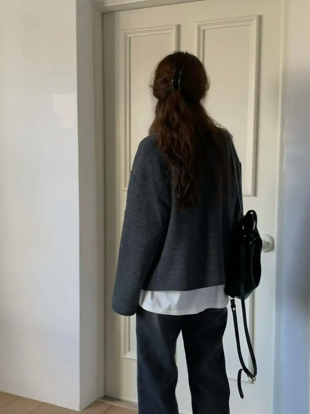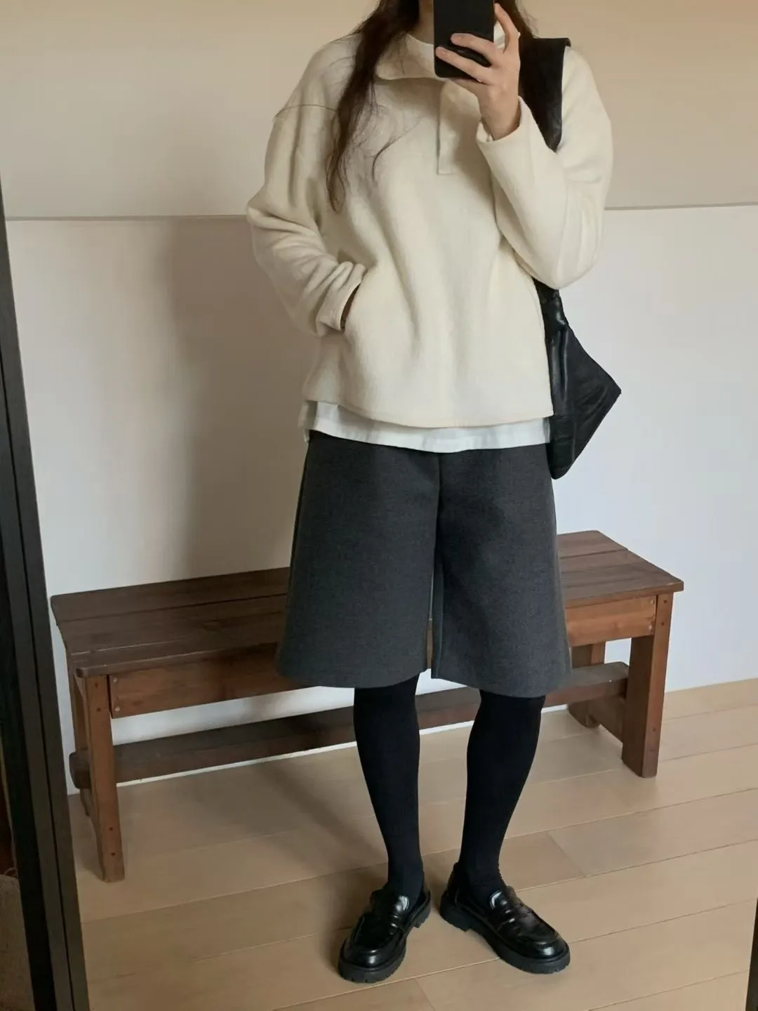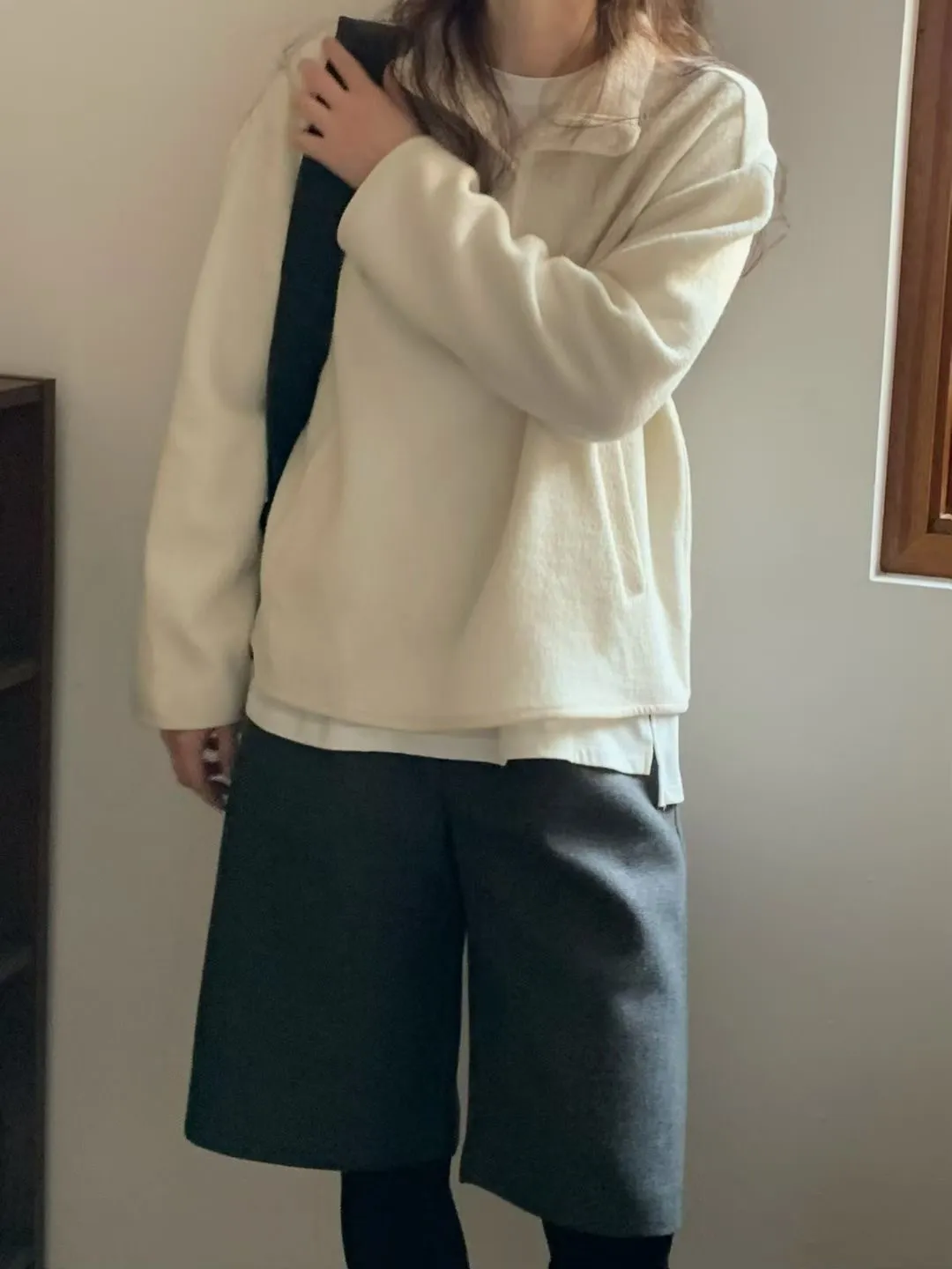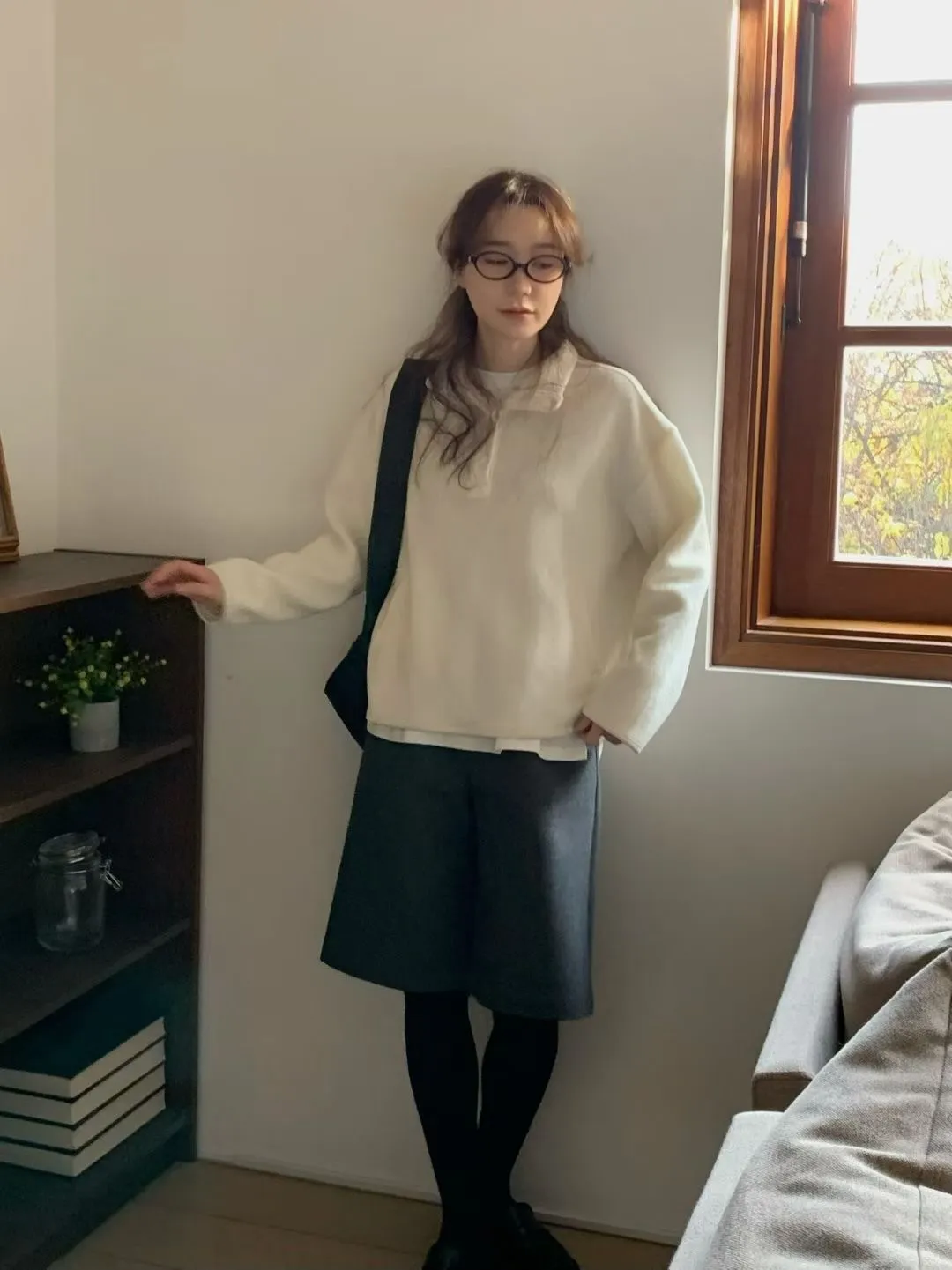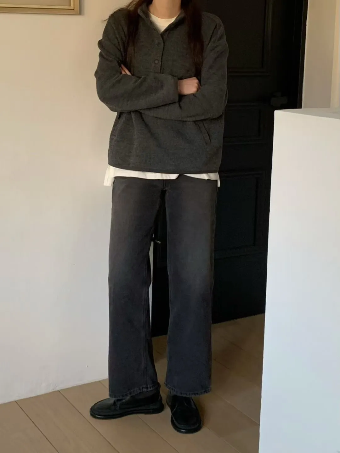 D06可愛圓釦小立領設計75%羊毛溫暖大學T上衣