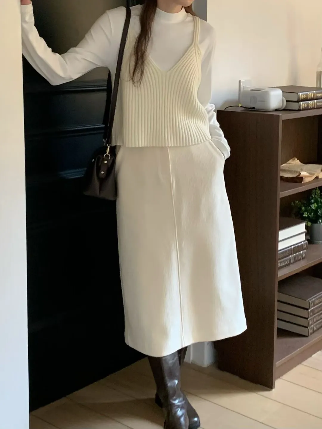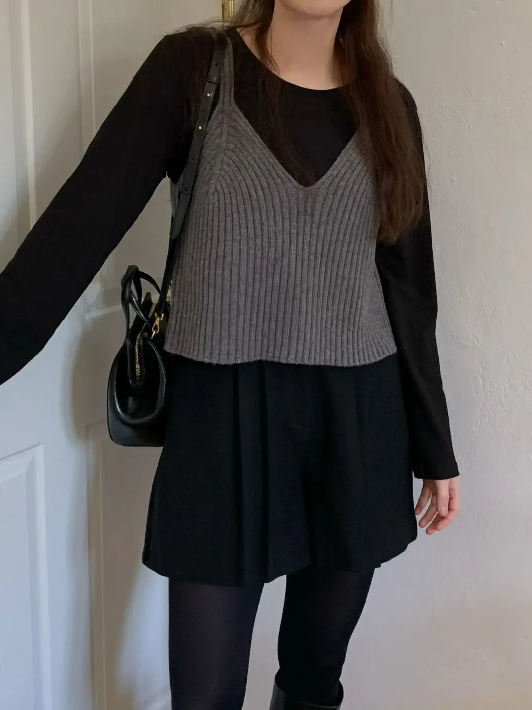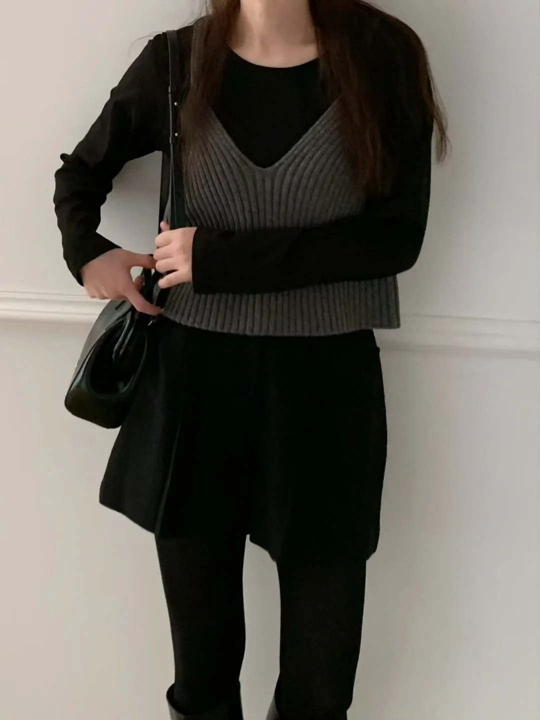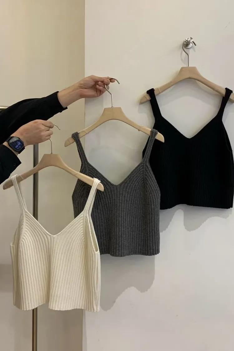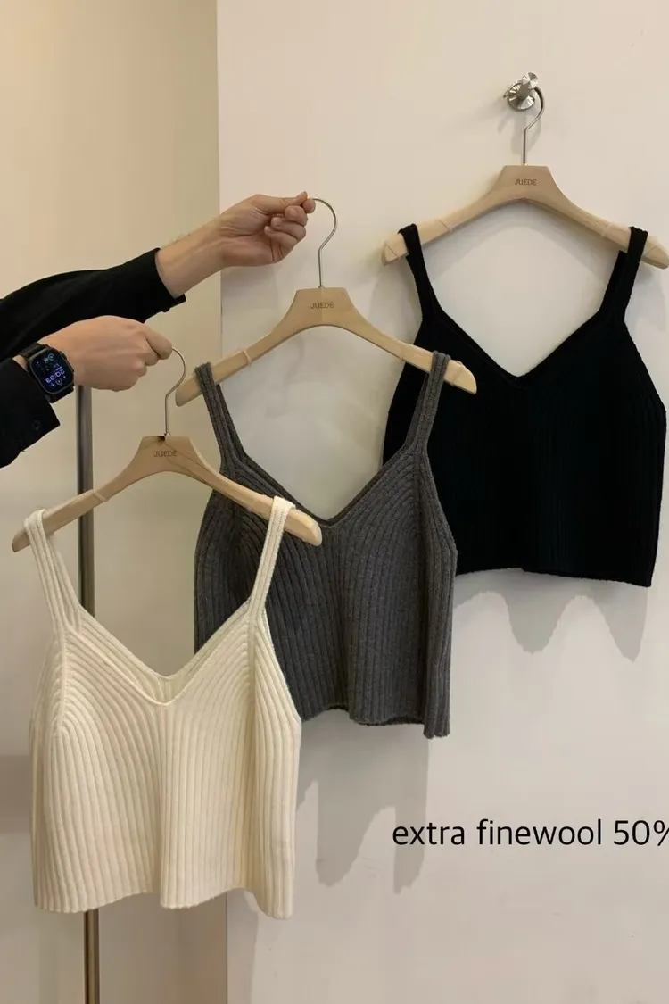 D18疊搭必備*50%羊毛V領細肩帶背心