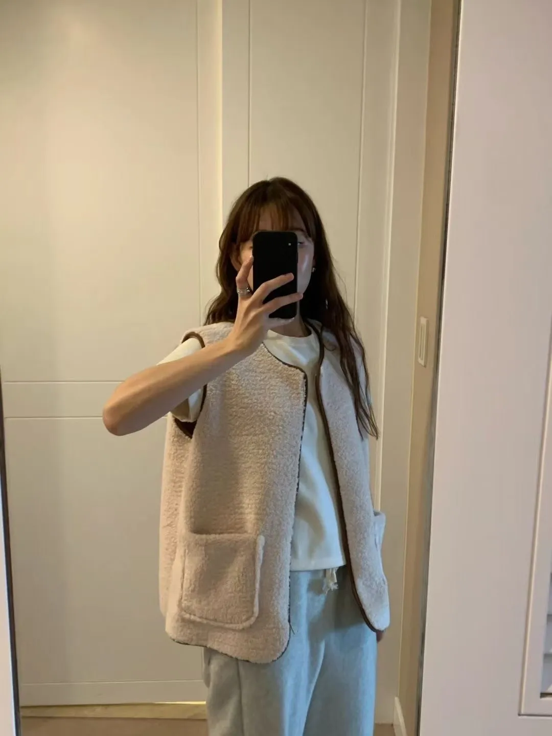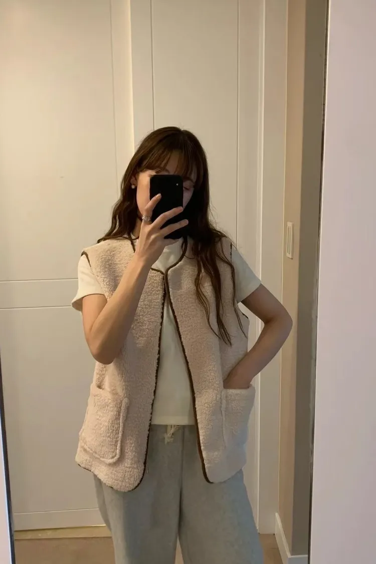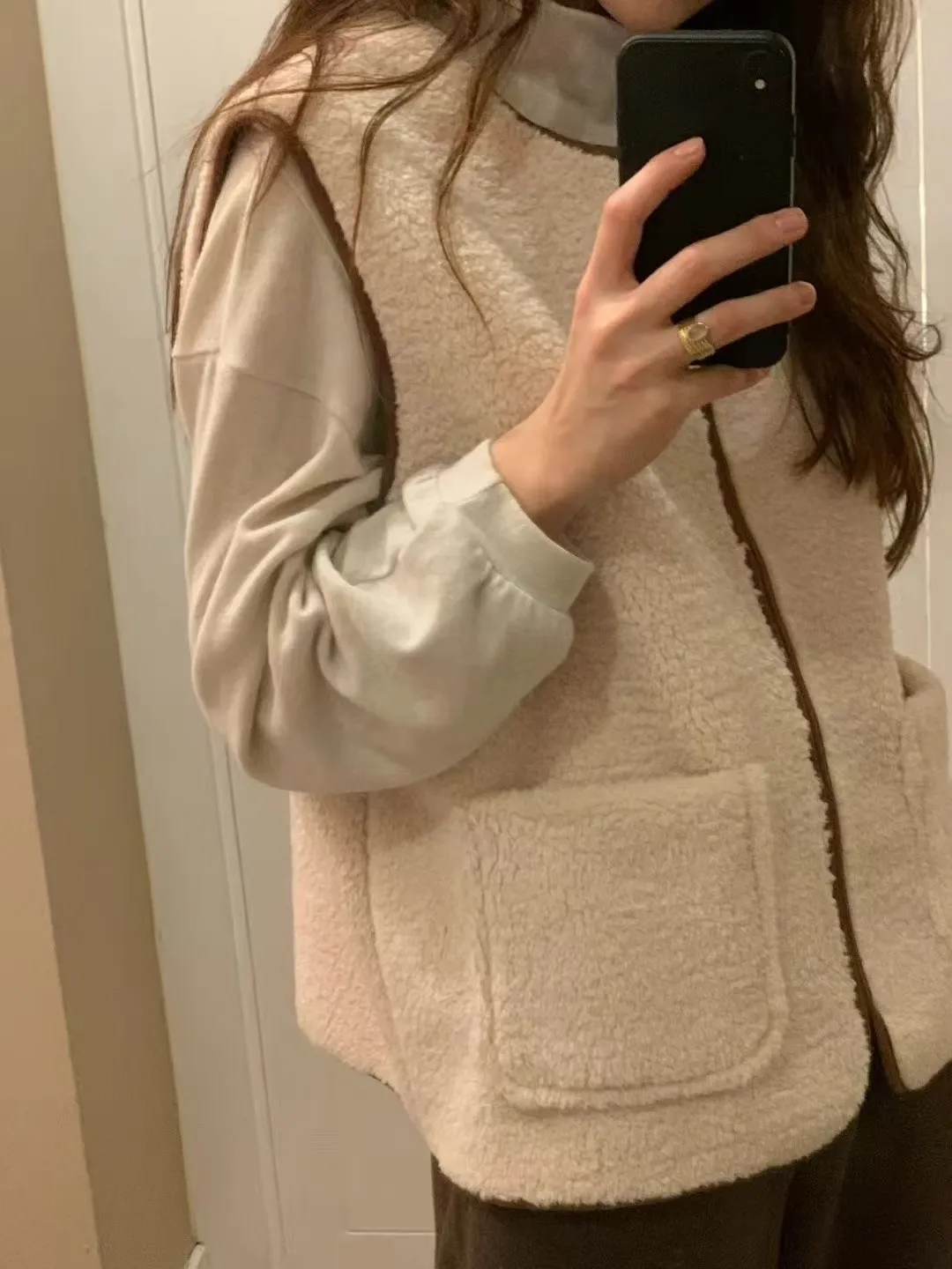 D31冬季溫暖羊咩咩毛毛拉鍊背心