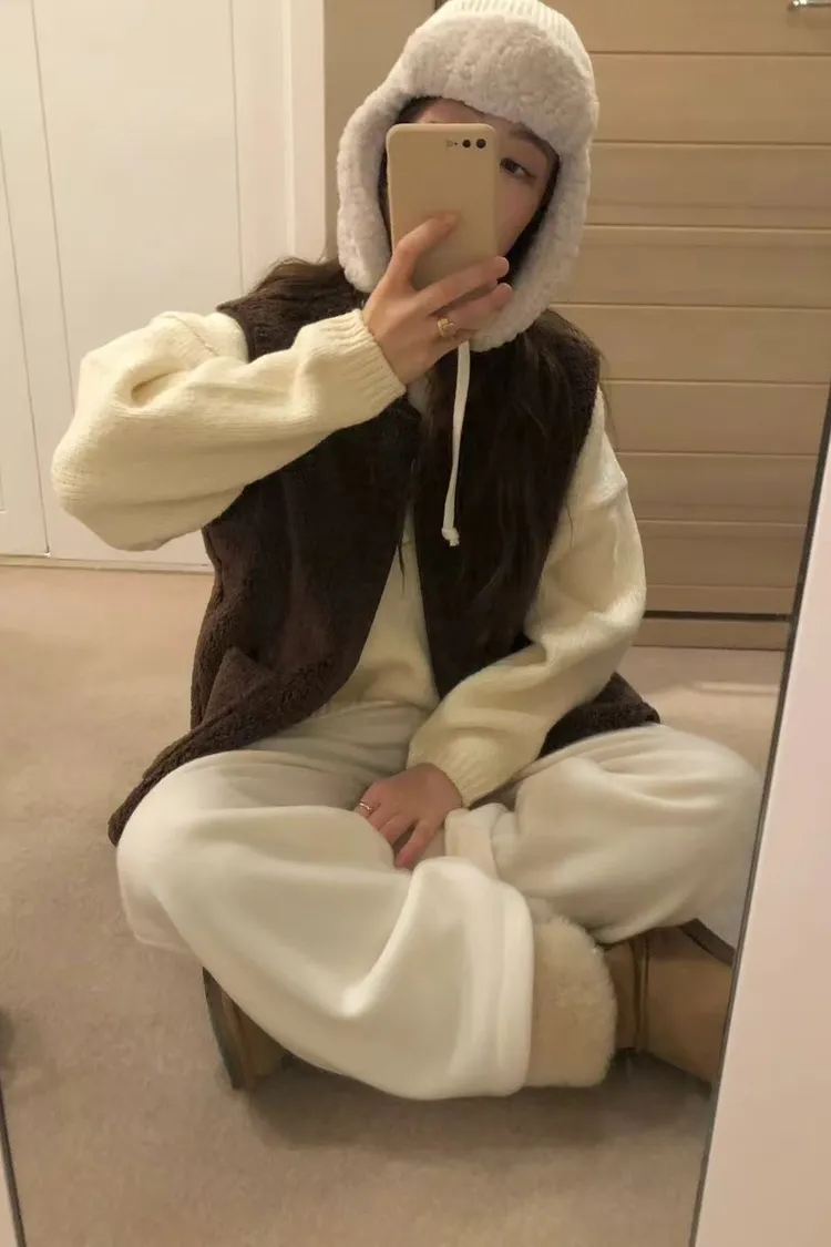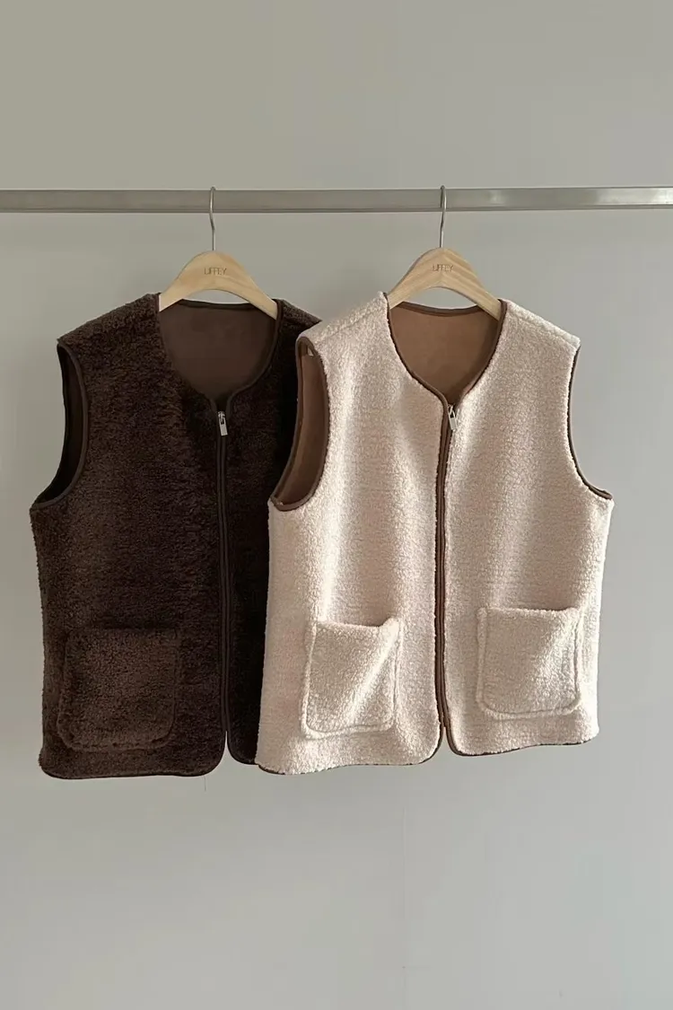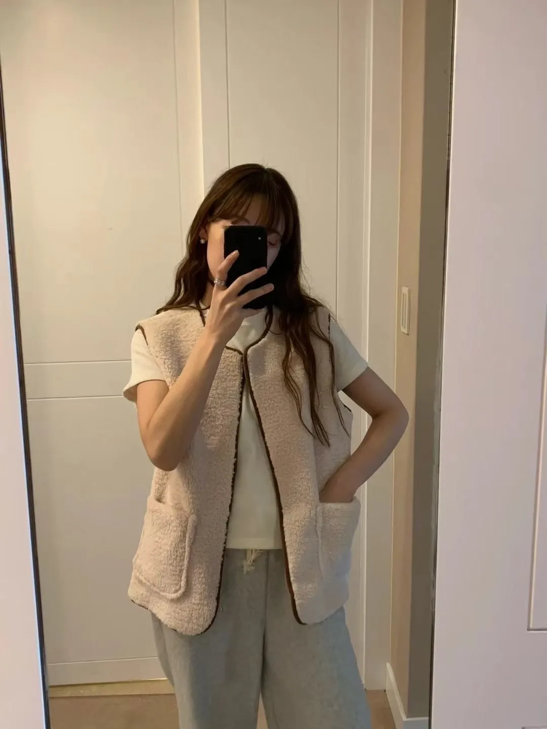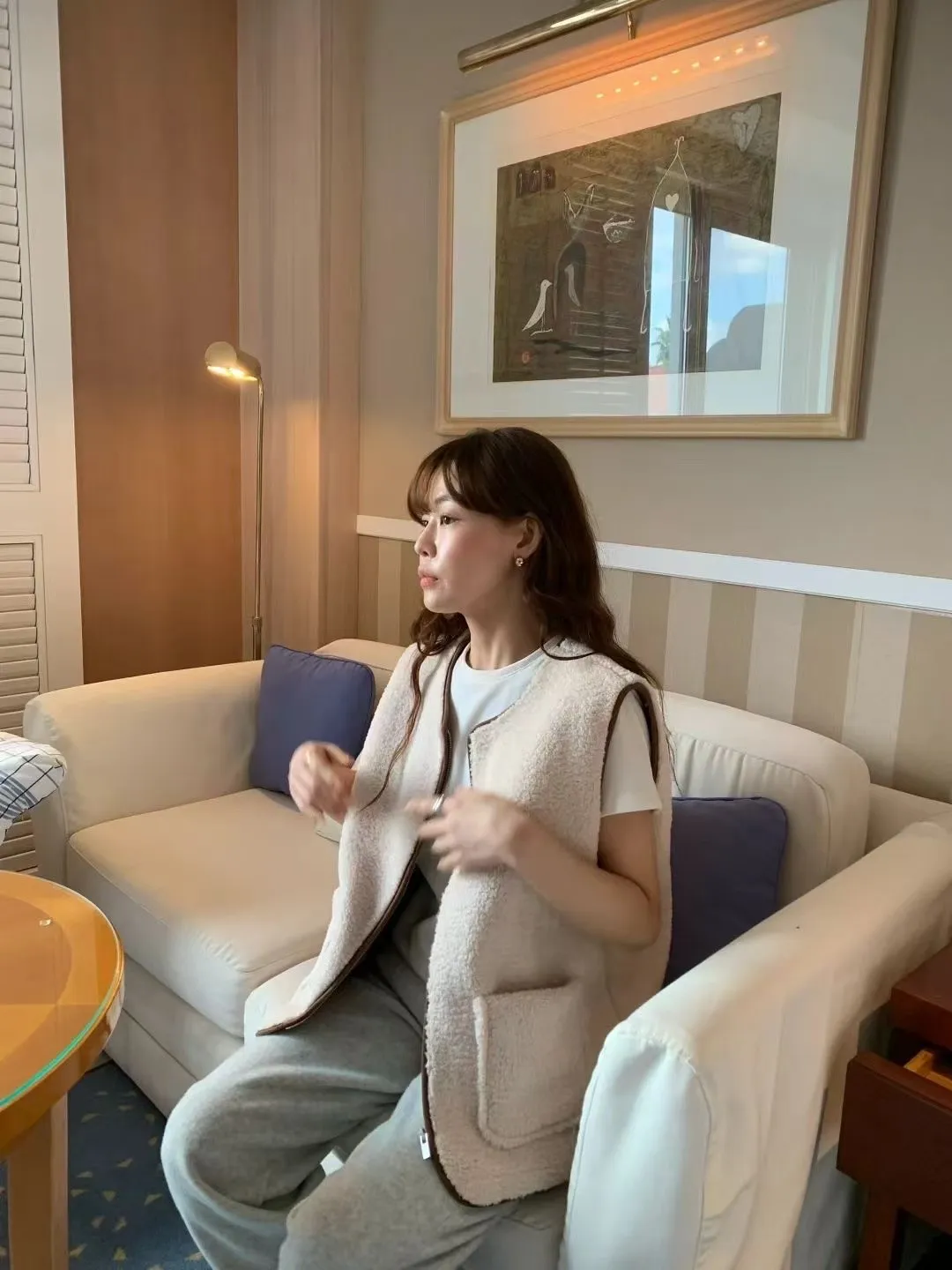 D31冬季溫暖羊咩咩毛毛拉鍊背心