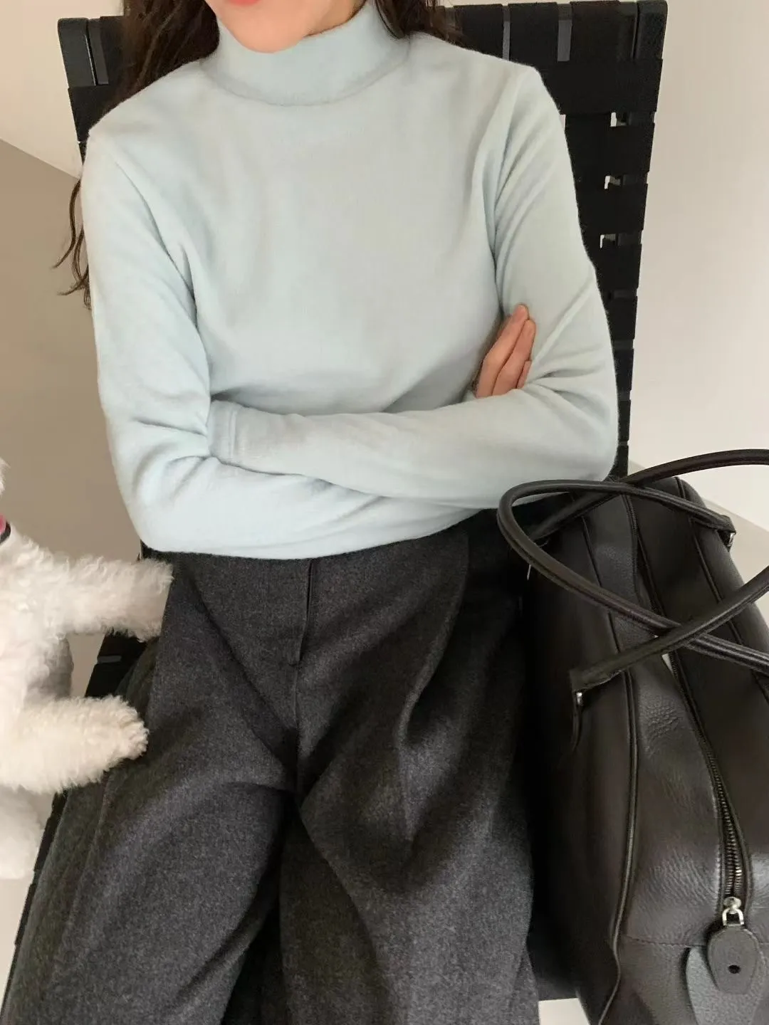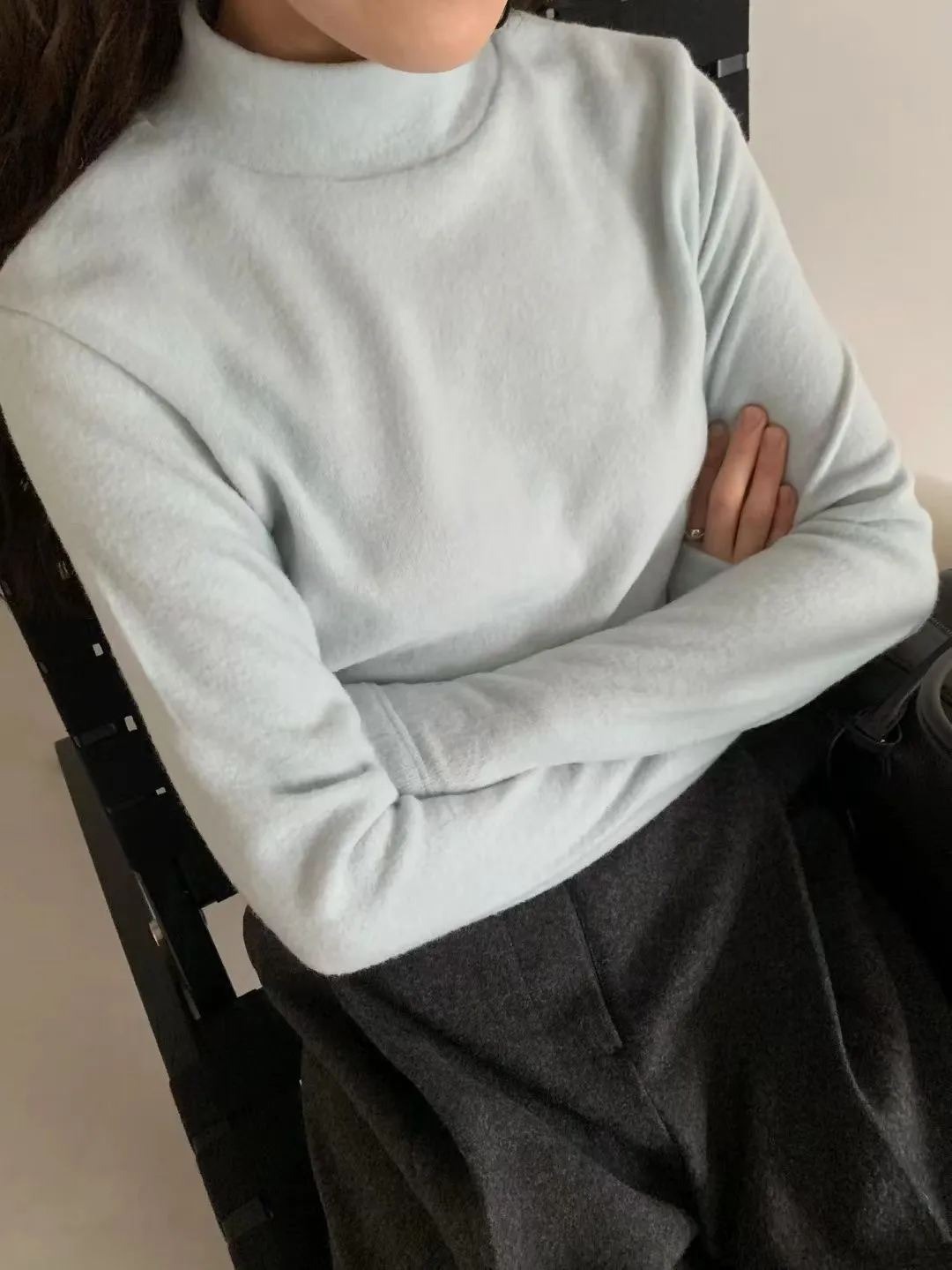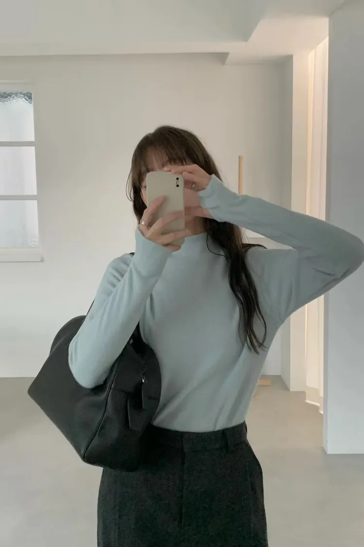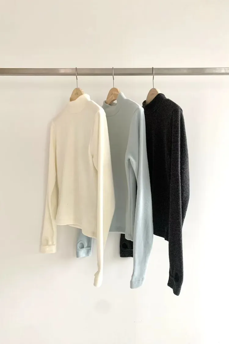 D40店長大推!超親膚小高領天絲羊毛拇指洞長T