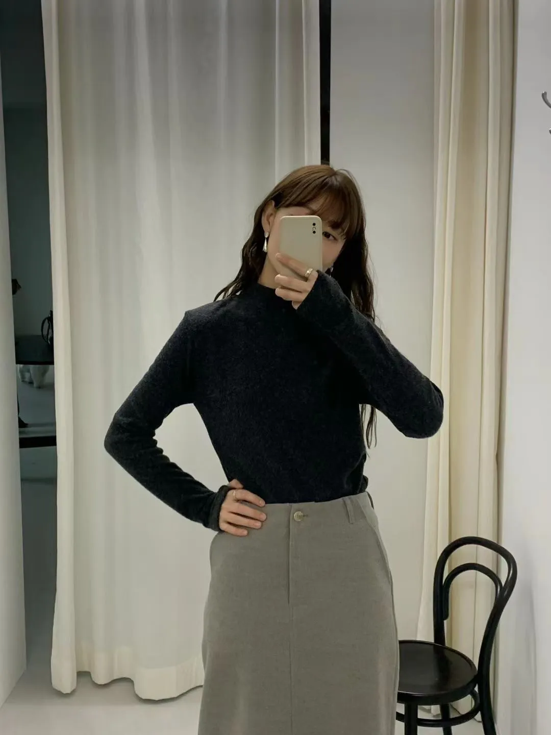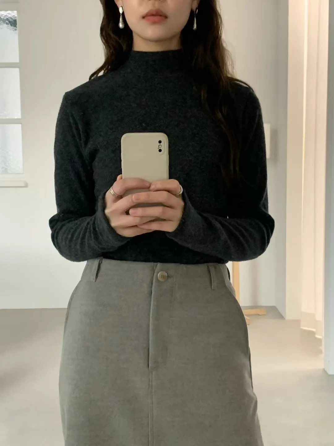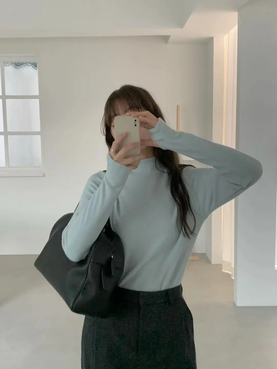 D40店長大推!超親膚小高領天絲羊毛拇指洞長T