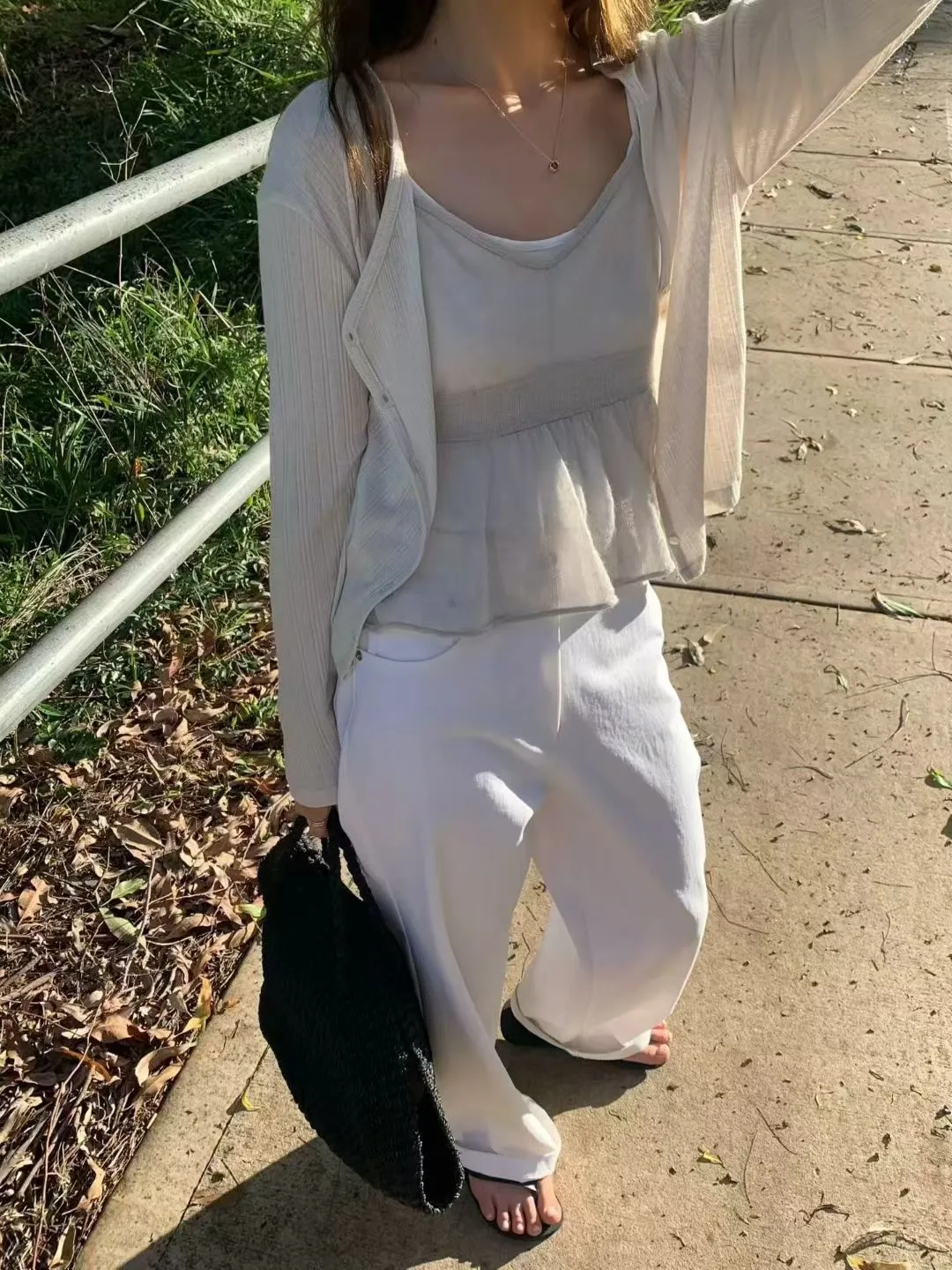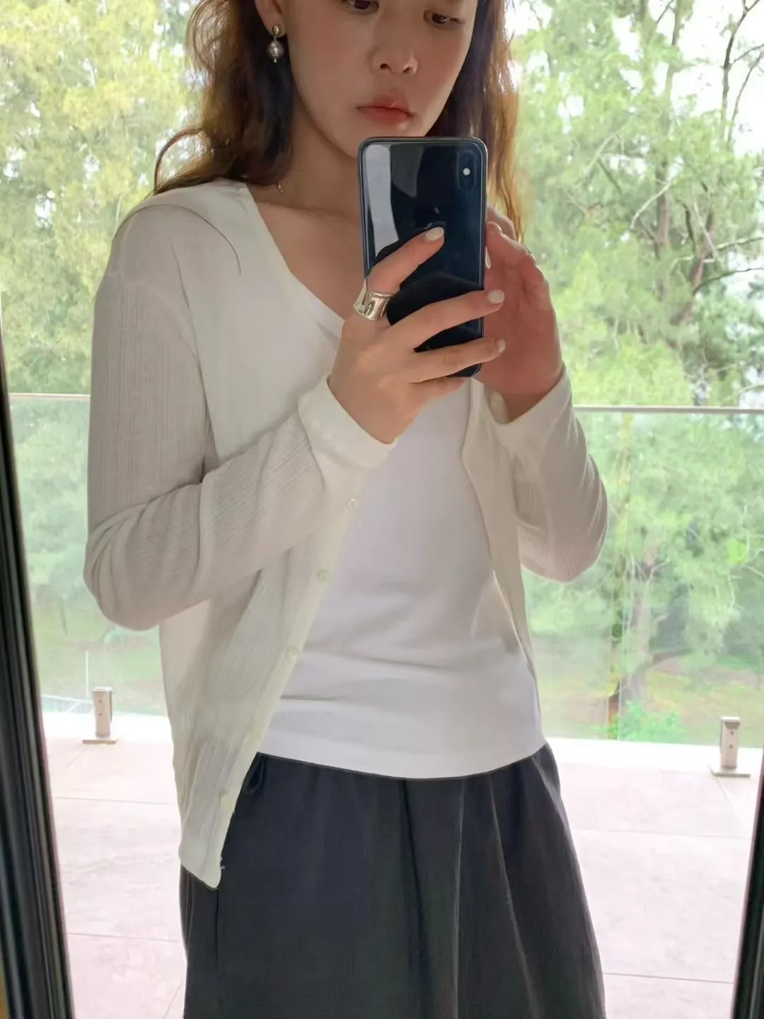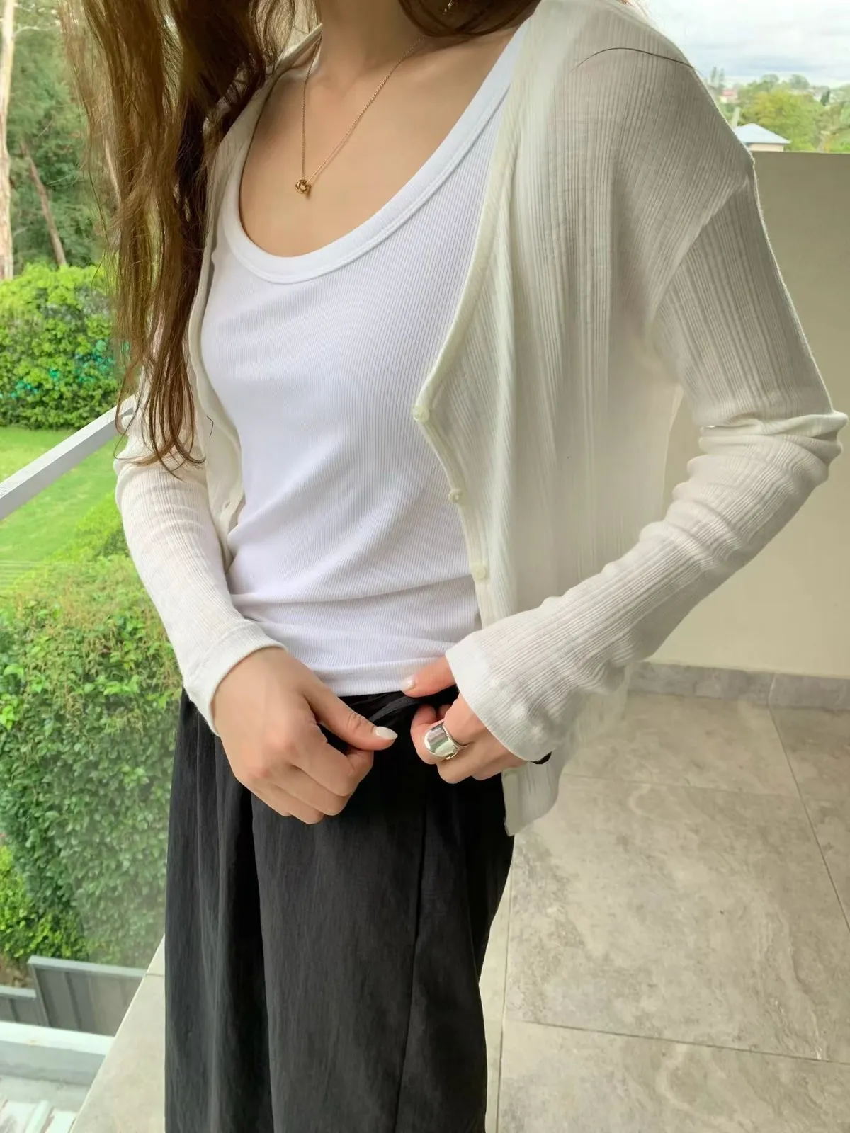 A09人氣*法式簡約線條感壓紋V領小釦上衣/外套