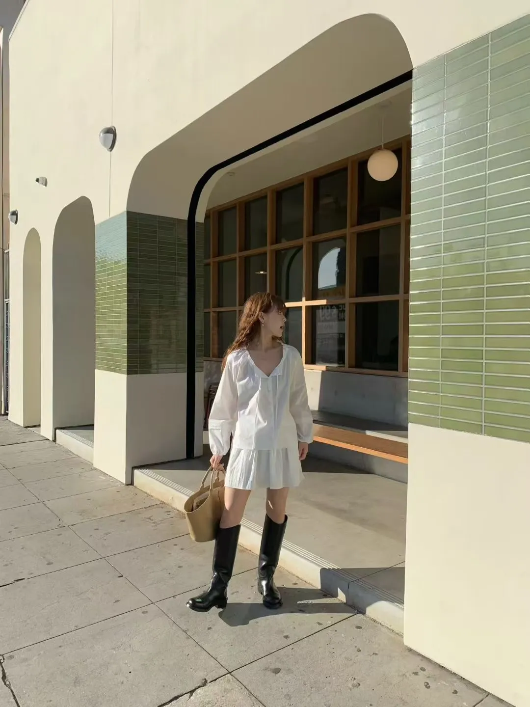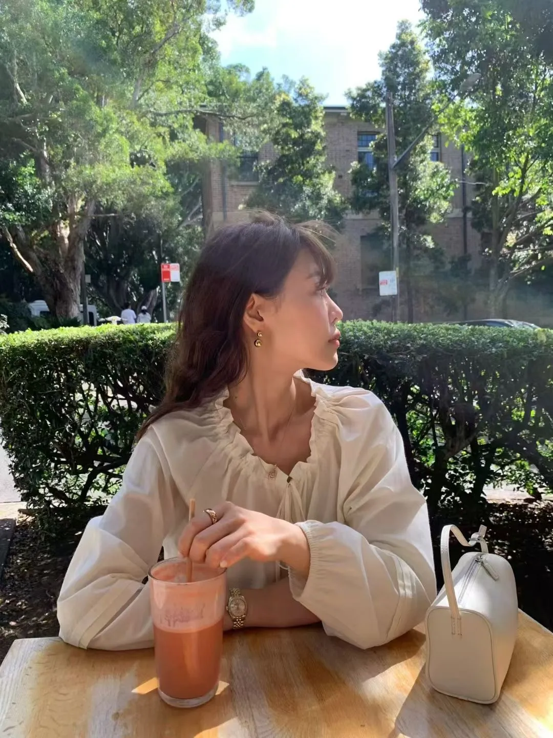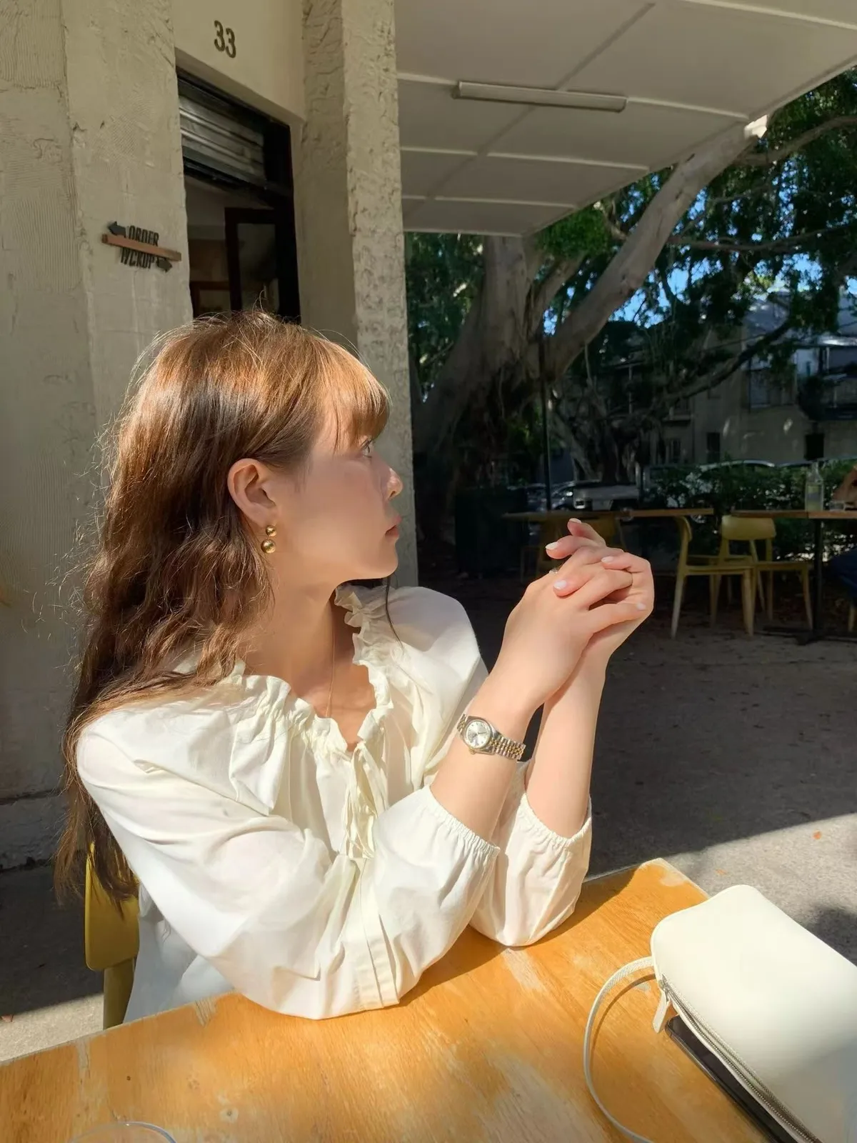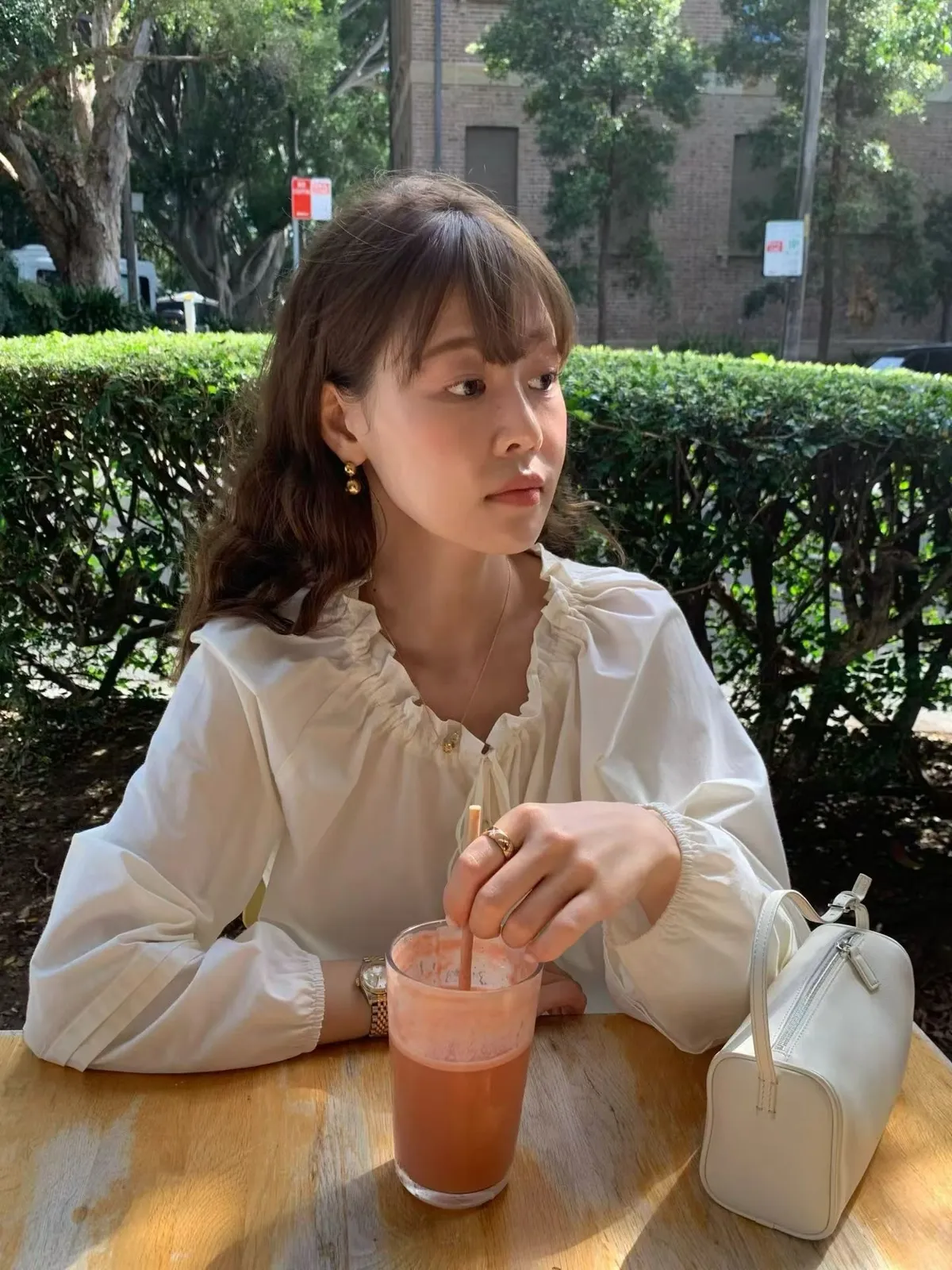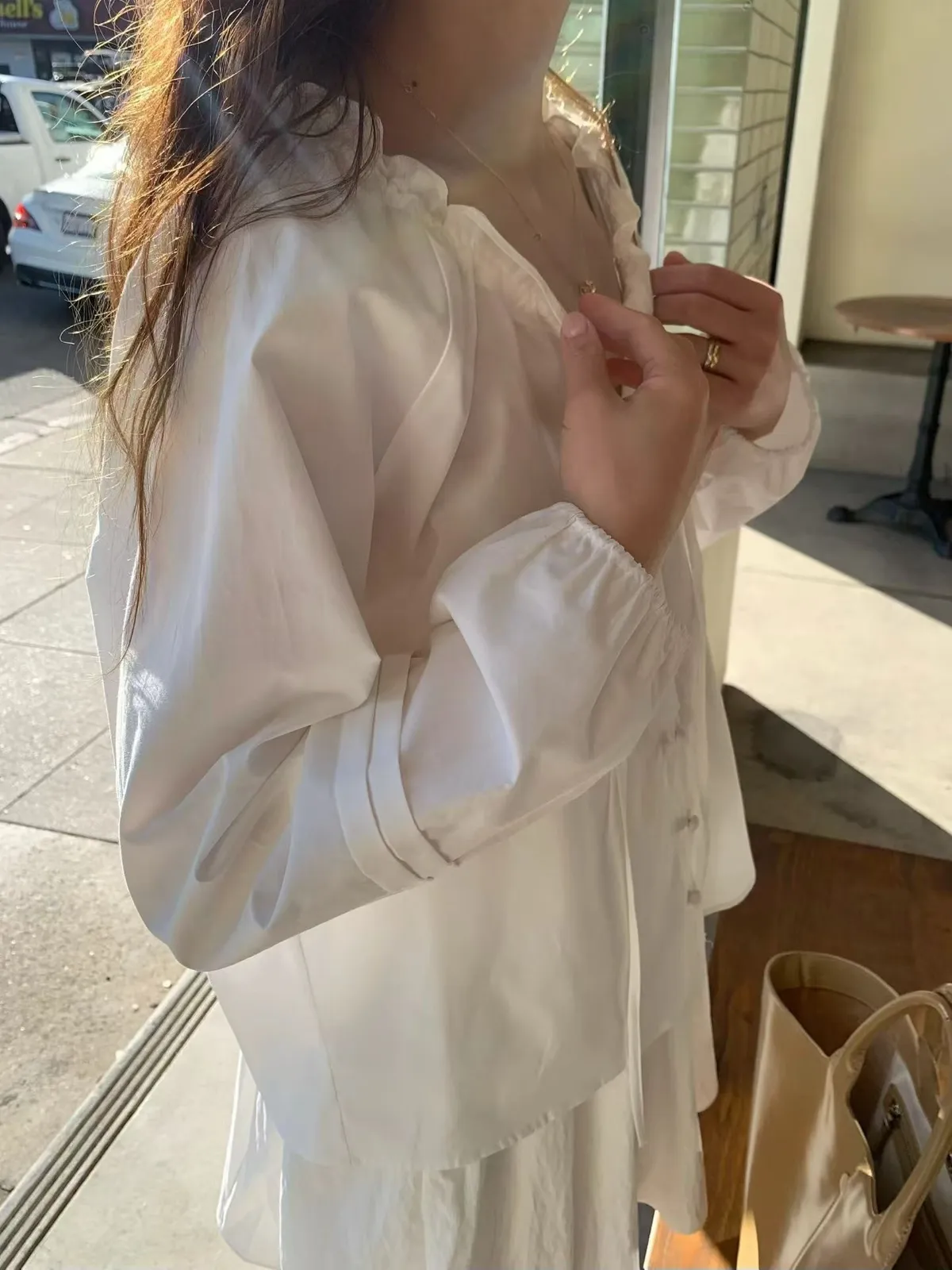 A11韓系小姊姊荷葉綁帶領多穿法罩衫上衣