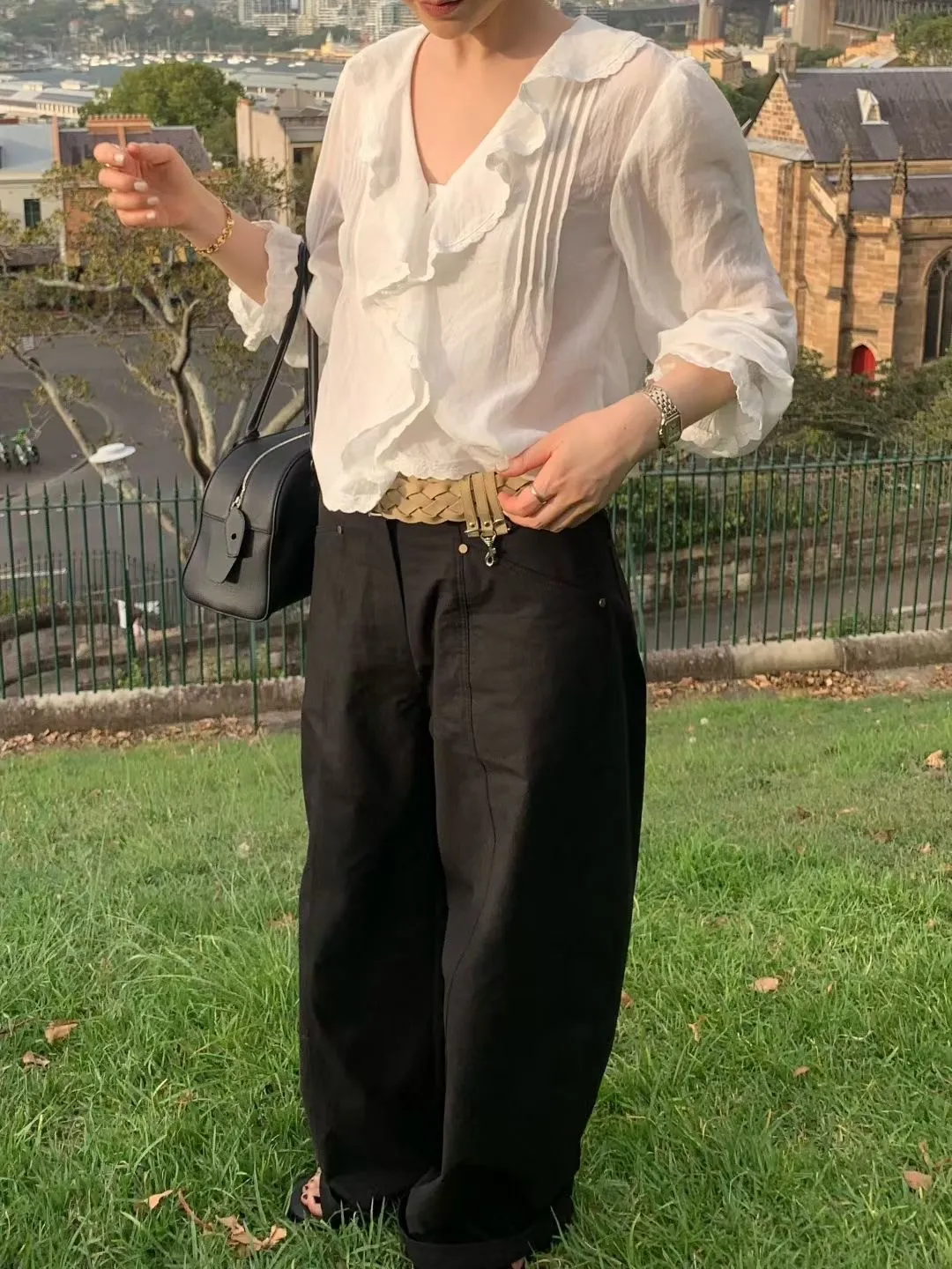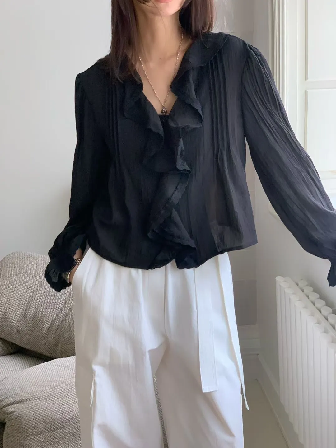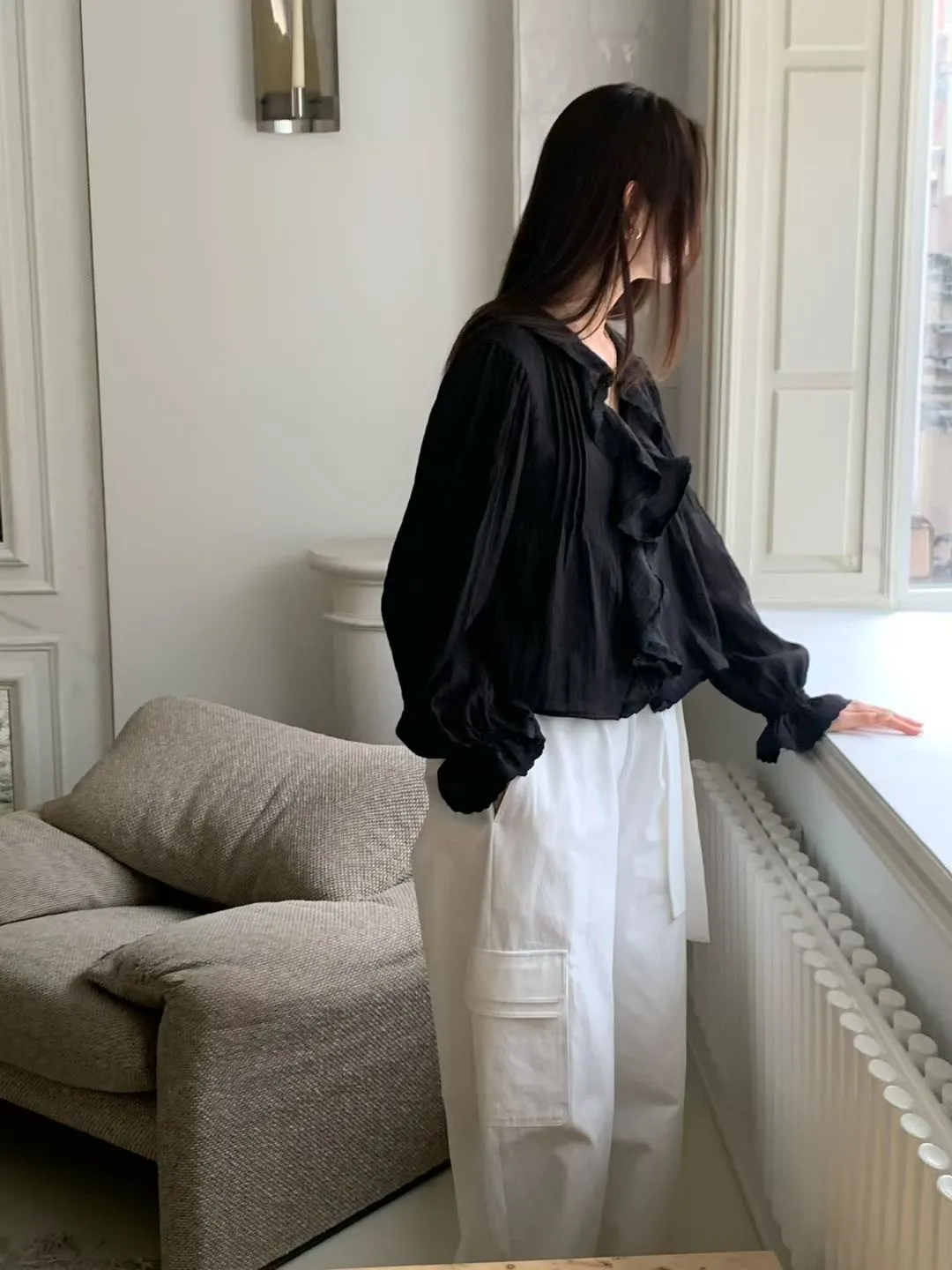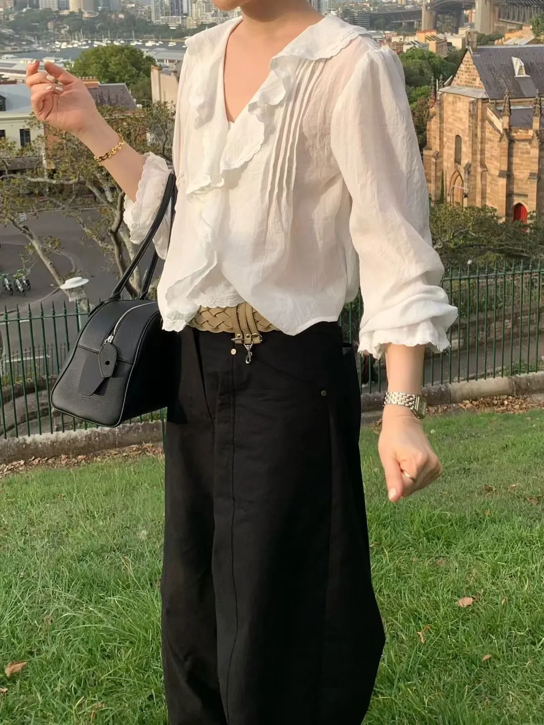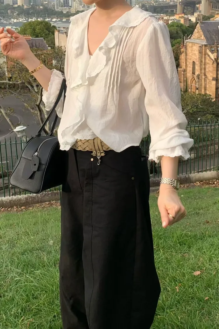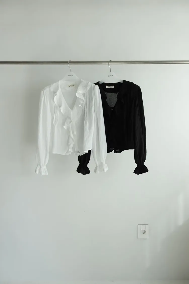 A19甜甜的好氣質滾邊蕾絲領罩衫上衣