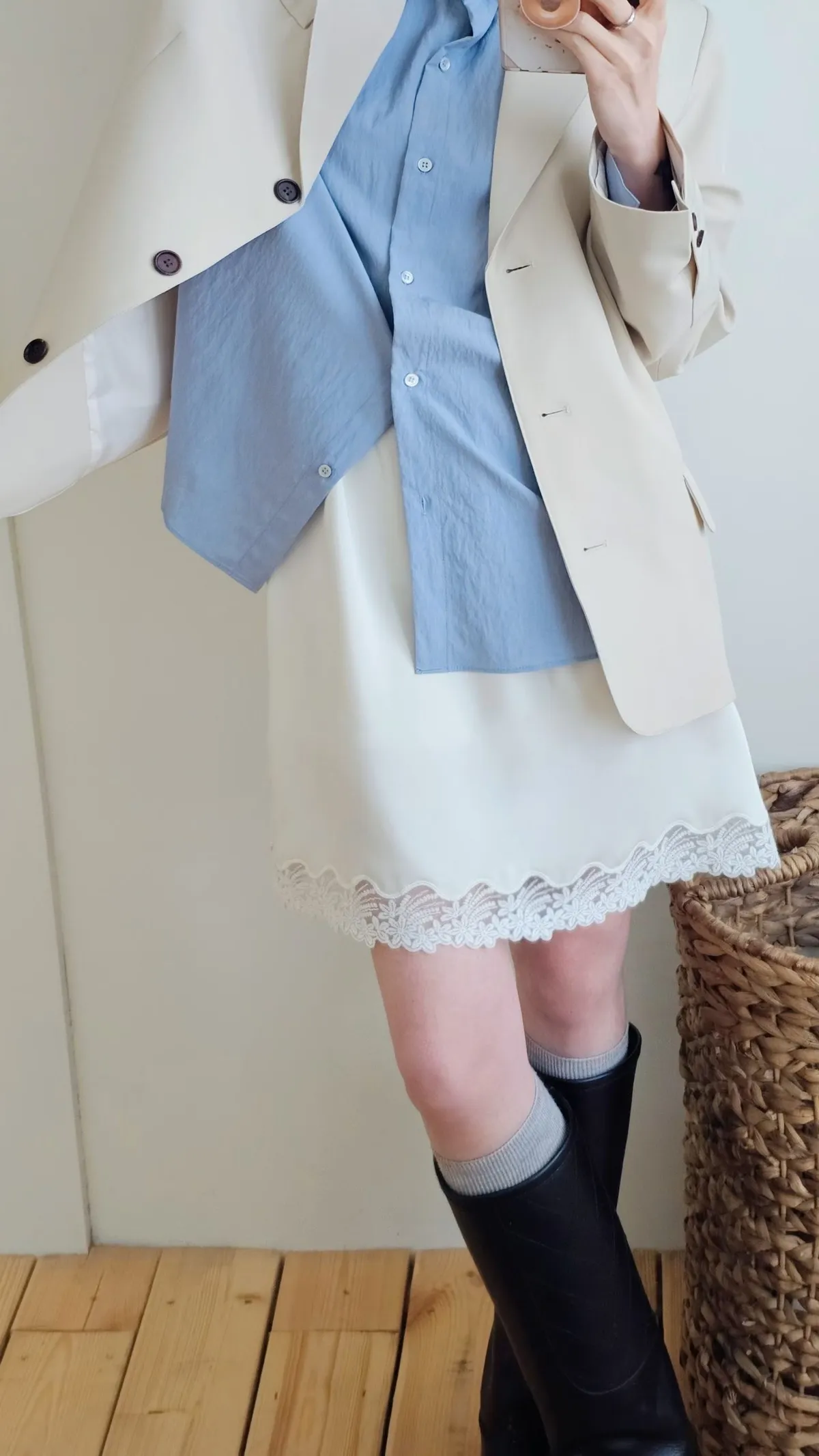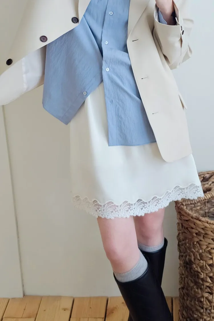 A40歐膩大推*下擺蕾絲緞面短裙*特價*