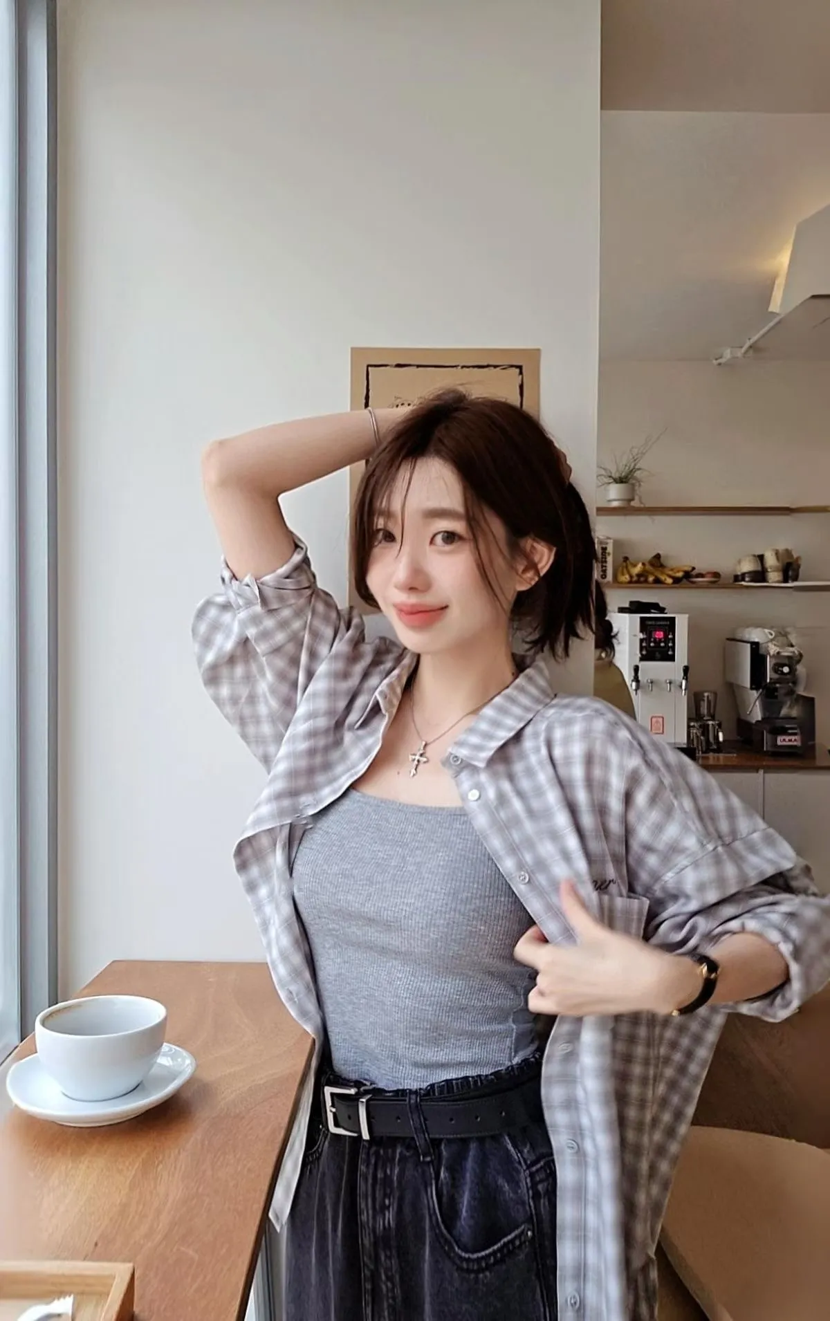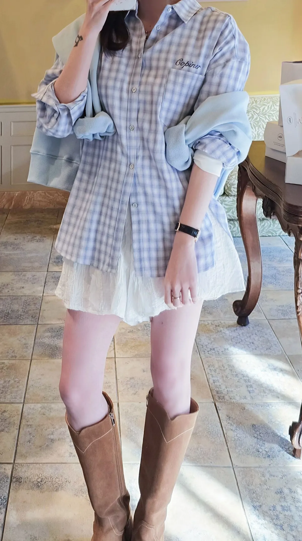 A41店長推薦!韓妞衣櫃必備的溫柔色調格紋襯衫
