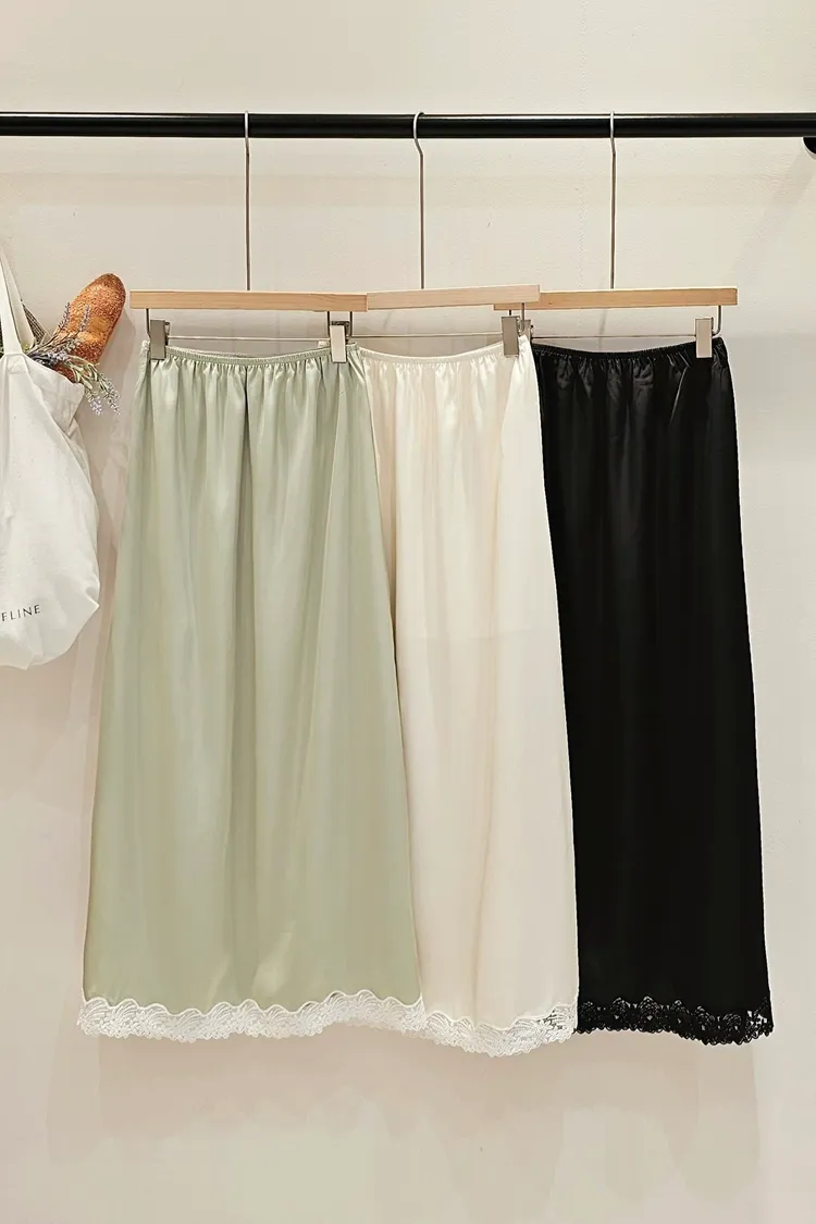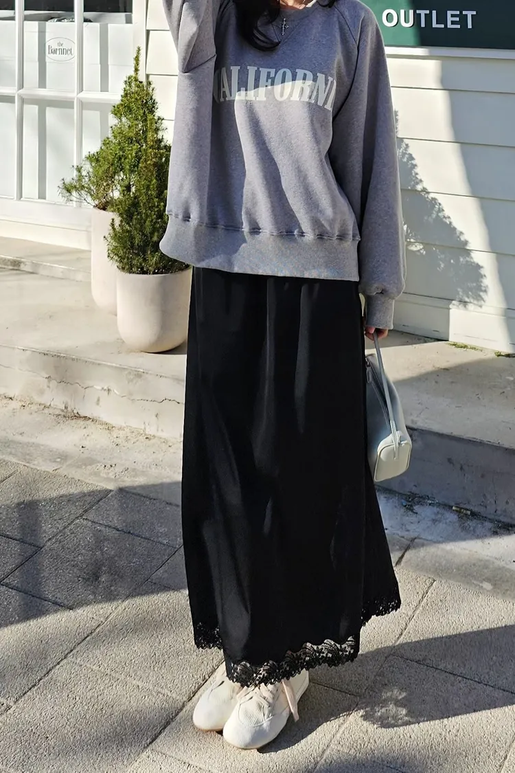 A44歐膩大推*下擺蕾絲緞面長裙