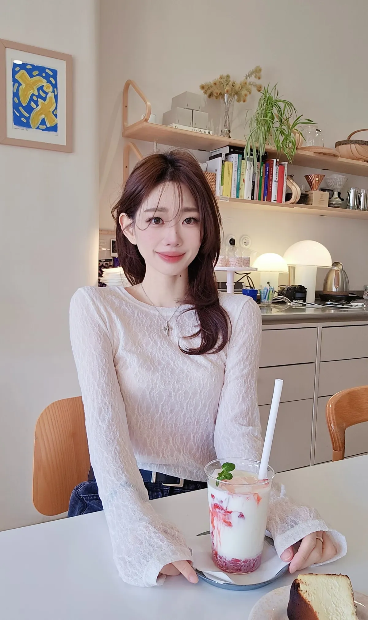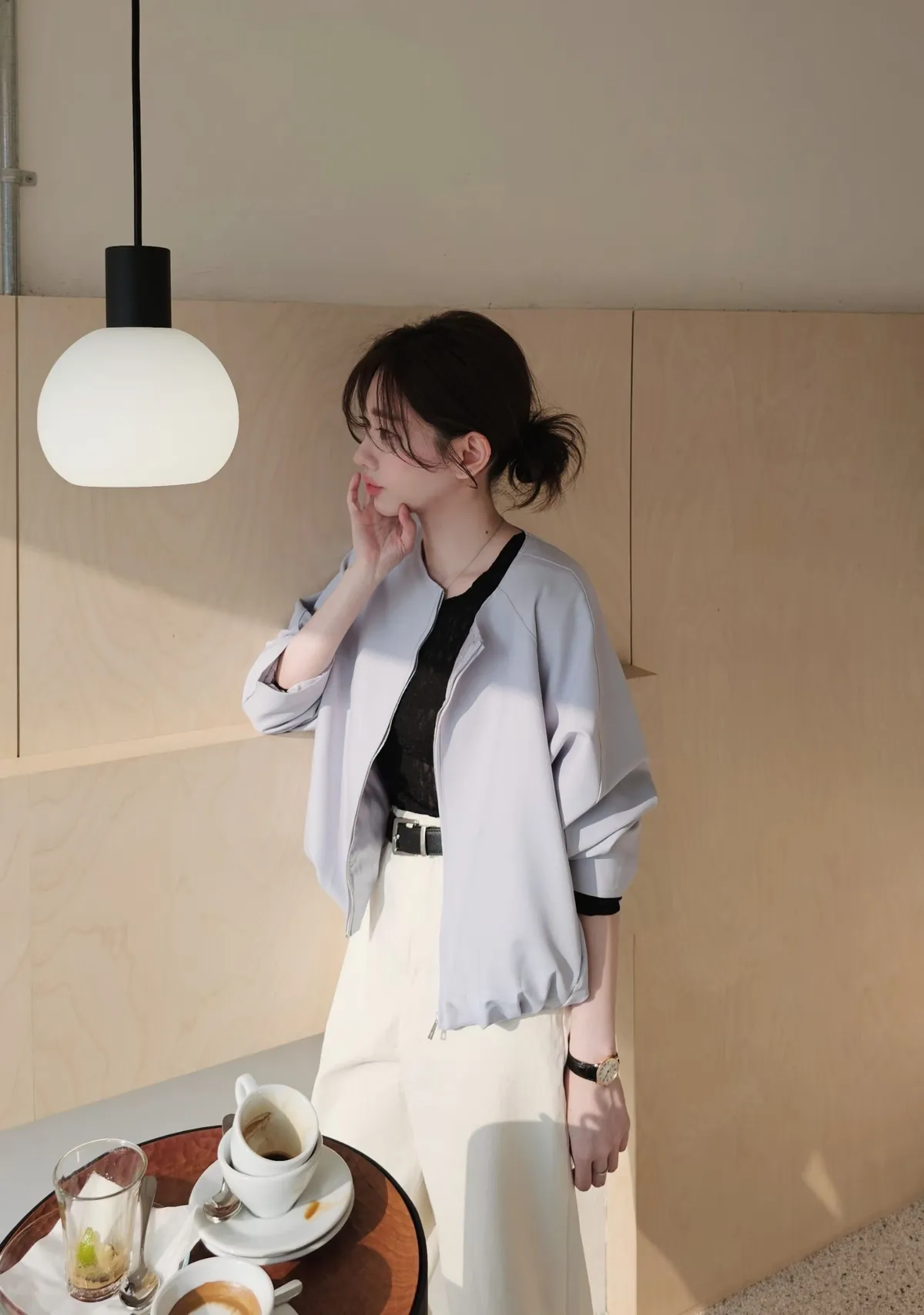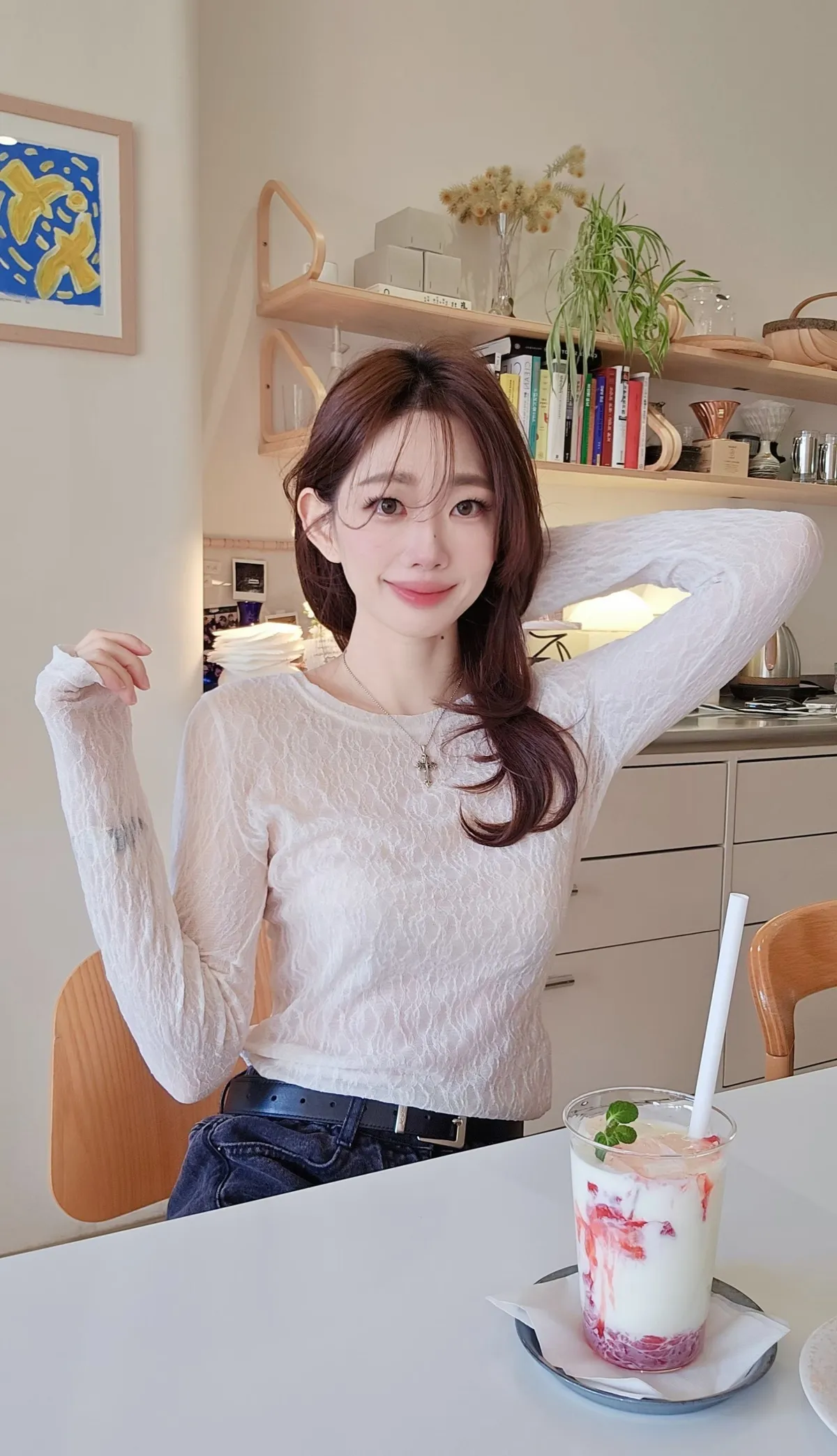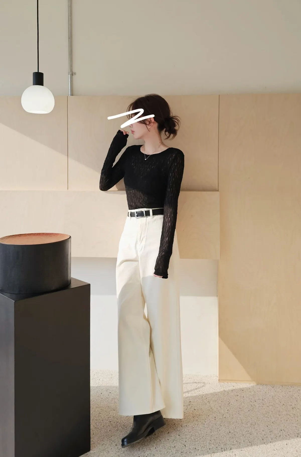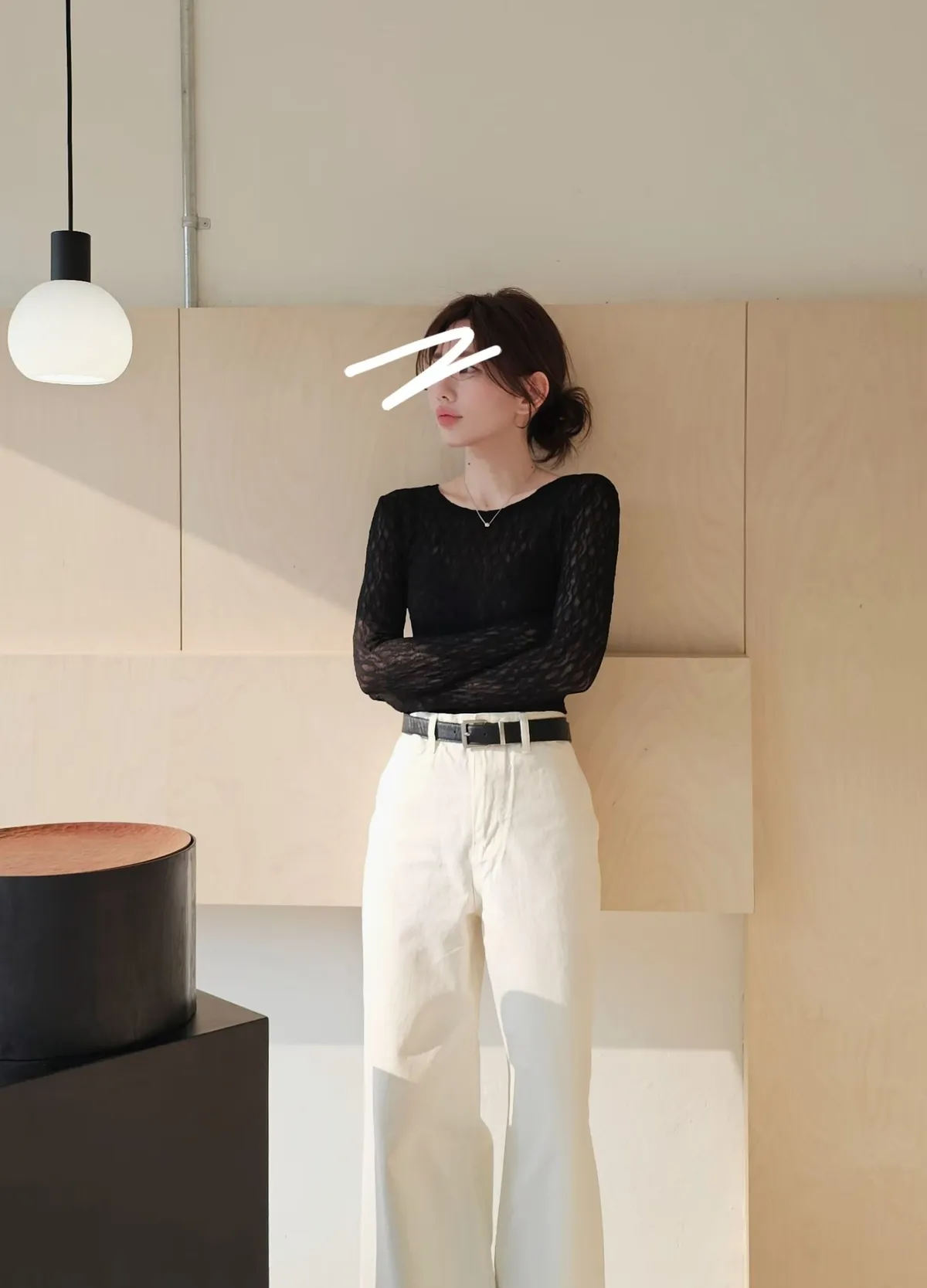 A45春天高級彈力蕾絲打底長T